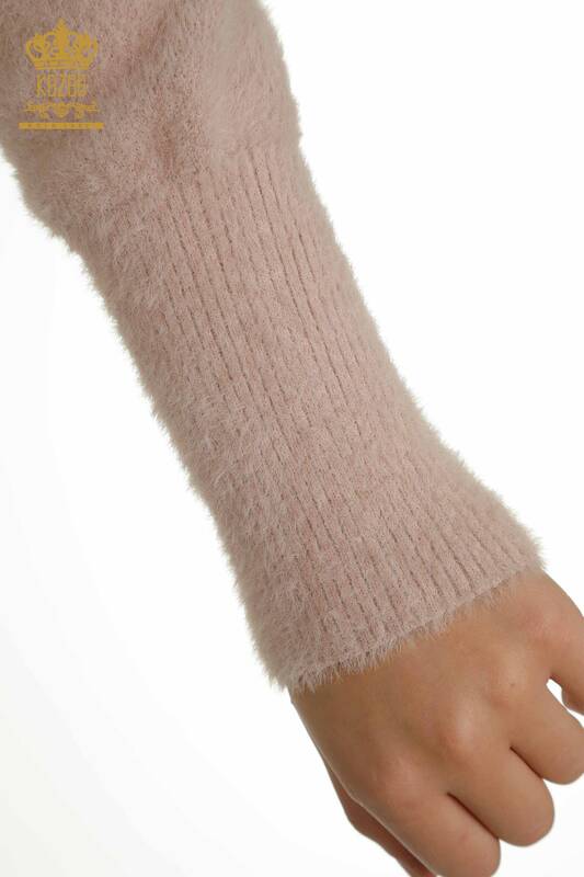 Großhandel Damen Strickjacke Angora Button Detailliertes Puder - 30447 | KAZEE