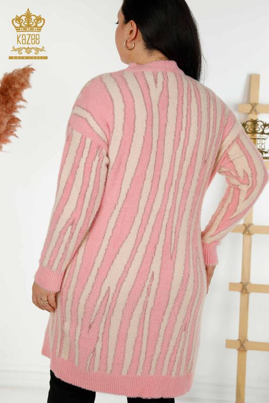 Großhandel Damen-Cardigan, zweifarbig, Angora-Garn, zum Binden, Puder – 30312 | KAZEE