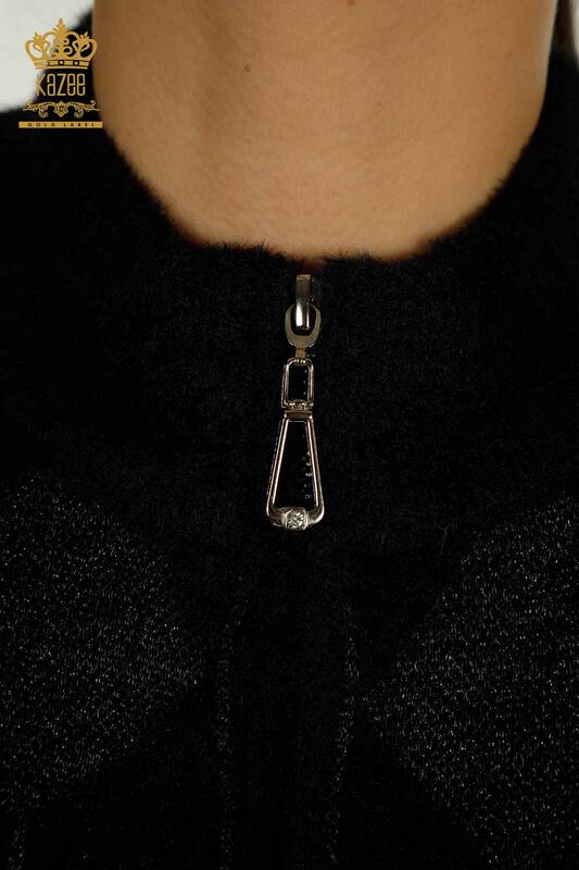 Großhandel Damen-Strickjacke mit Reißverschluss, ärmellos, Angora-Schwarz – 30211 | KAZEE