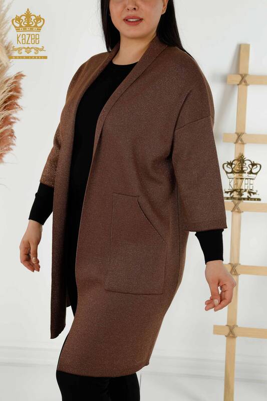 Großhandel Damen-Cardigan mit Taschendetail, lang, braun – 30047 | KAZEE