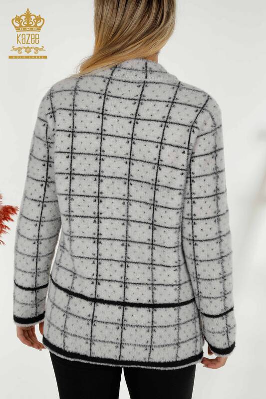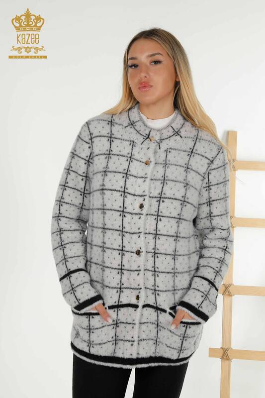 Großhandel Damen Strickjacke Zweifarbig Angora Pocket Ecru Schwarz - 30592 | KAZEE