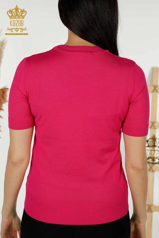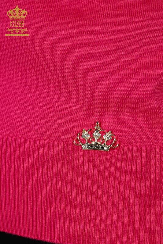 Großhandel Damen Strickpullover American Model Basic Logo Fuchsia - 30255 | KAZEE