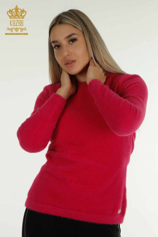 Großhandel Damen Strickpullover Angora Basic Logo Fuchsia - 30490 | KAZEE