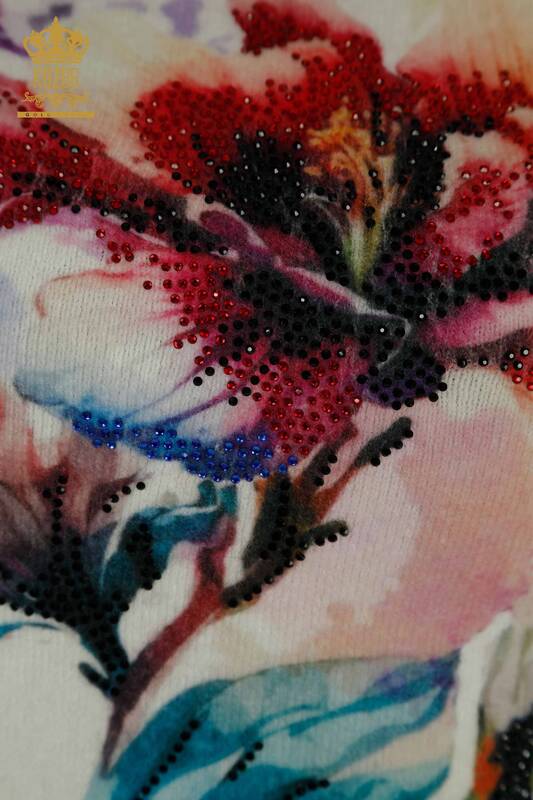 Großhandel Damen Strickpullover Angora Langarm Stein bestickt Digital - 40045 | KAZEE