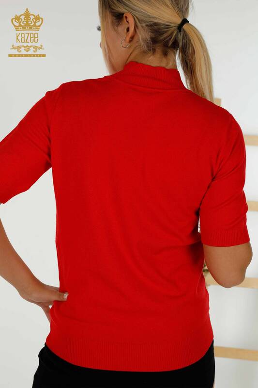 Großhandel Damen Strickpullover Basic Kurzarm Stehkragen Rot - 30334 | KAZEE