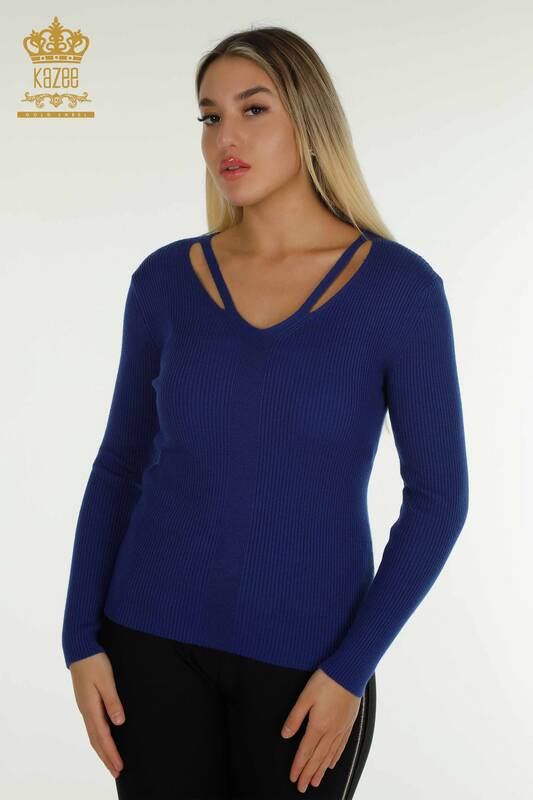 Großhandel Damen-Strickpullover mit Kragendetail Basic Saks - 30392 | KAZEE