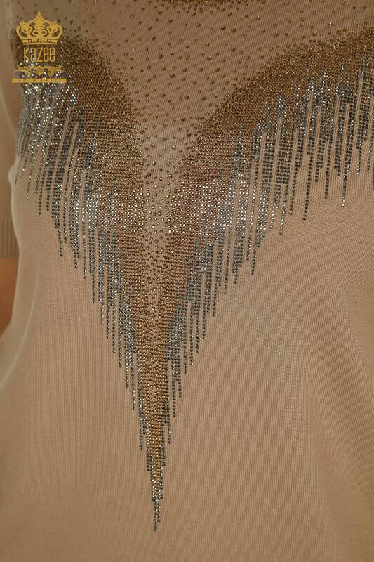Großhandel Damen-Strickpullover mit Crystal Stone-Stickerei, amerikanisches Modell Beige - 30330 | KAZEE