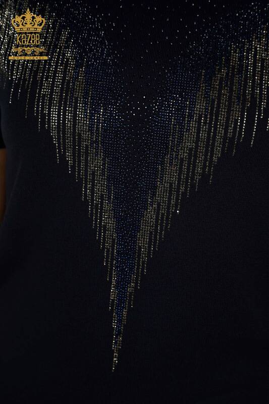 Großhandel Damen-Strickpullover mit Kristall Stein -Stickerei, amerikanisches Modell, Marineblau – 30330 | KAZEE