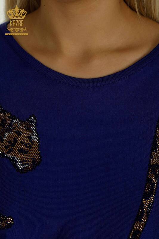 Großhandel für Damen-Strickpullover mit Leopardenstein-Stickerei und Fledermausärmeln - 30633 | KAZEE