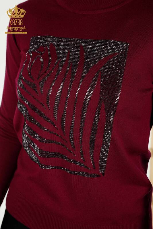 Großhandel Damen-Strickpullover mit Rosenmuster und Steinstickerei in Lila – 30448 | KAZEE