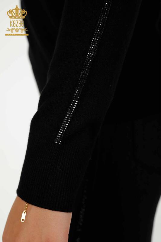 Großhandel Damen-Strickpullover mit Rosenmuster und Steinstickerei in Schwarz – 30448 | KAZEE