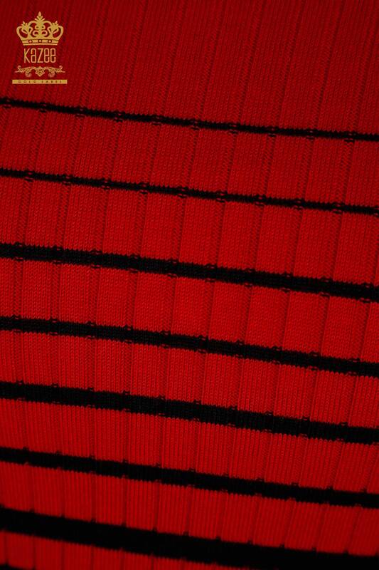 Großhandel Damen-Strickpullover mit Schulterdetail, Langarm, Rot-Schwarz – 30079 | KAZEE