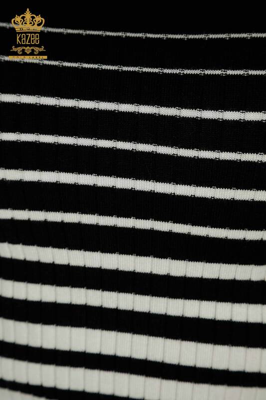 Großhandel Damen-Strickpullover mit Schulterdetail, Langarm, Schwarz-Ecru – 30079 | KAZEE