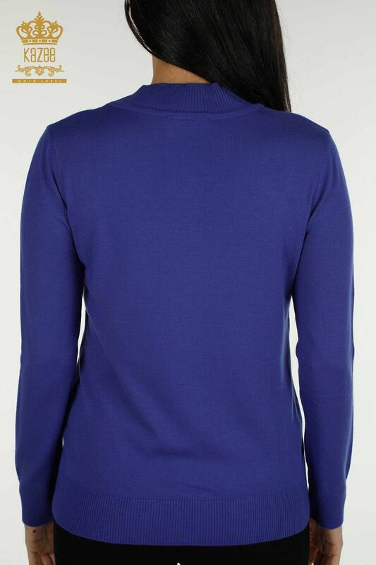 Großhandel Damen-Strickpullover mit hohem Kragen, Basic-Logo, Violett – 30613 | KAZEE