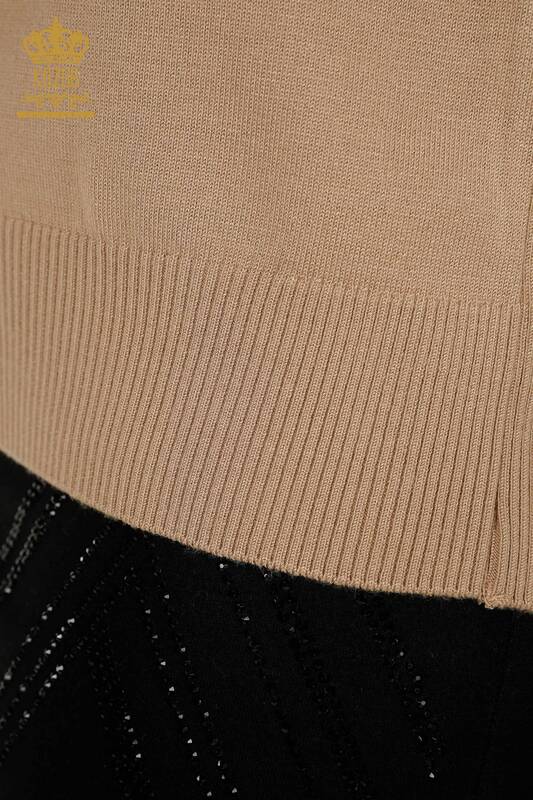 Großhandel Damen-Strickpullover mit Stone-Stickerei und kurzen Ärmeln Beige - 30491 | KAZEE