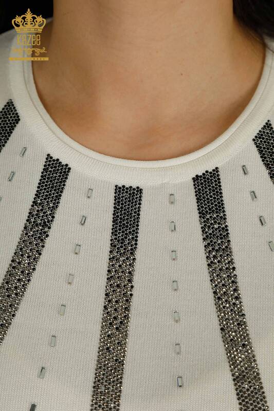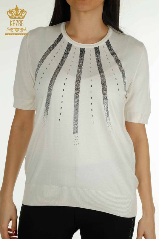 Großhandel Damen-Strickpullover mit Stone-Stickerei, kurzärmlig, Ecru – 30460 | KAZEE
