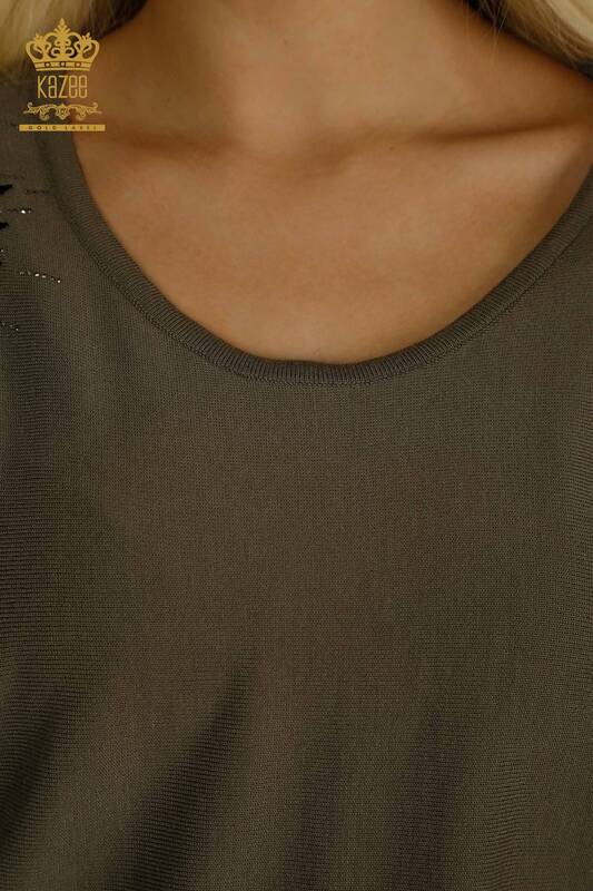 Großhandel für Damen-Strickpullover, Tüll, detaillierte Steinstickerei, Khaki – 15699 | KAZEE