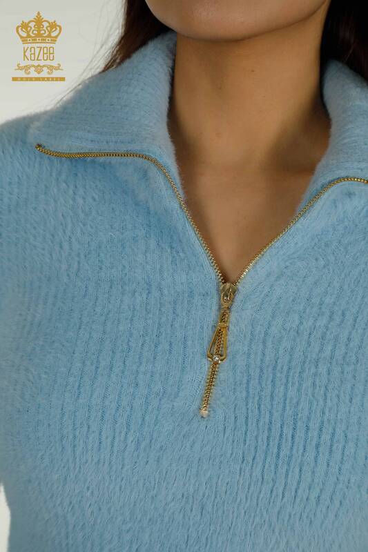 Großhandel Damenstrickwaren Angora Stone Beaded Zipper Blue - 30769 | KAZEE