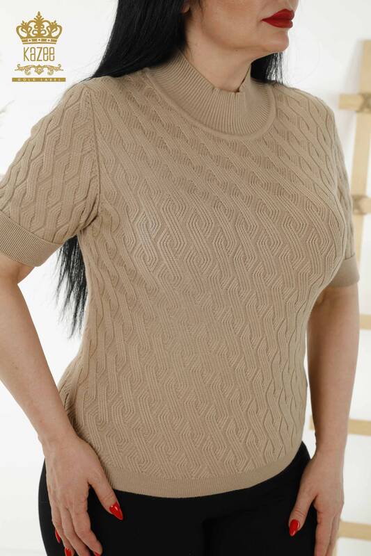 Großhandel Damen Strickwaren Pullover Haare Geflochtenes Amerikanisches Modell Beige - 16181 | KAZEE