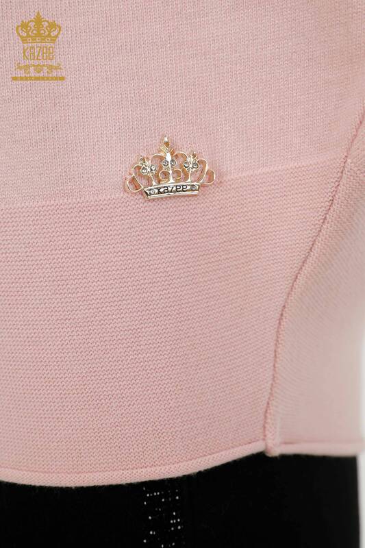 Großhandel Damen Strickwaren Pullover Basic Logo Fledermaus Ärmel Puder - 30241 | KAZEE
