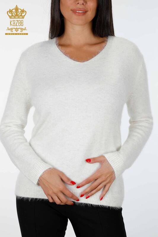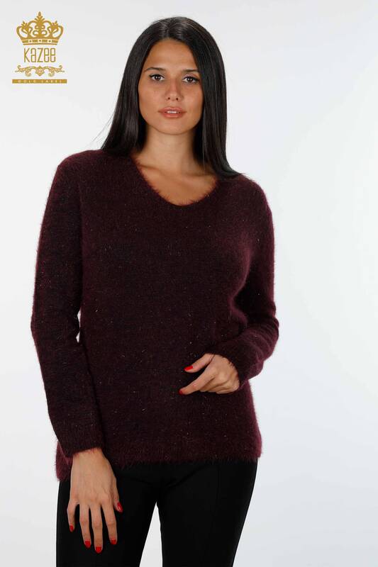 Großhandel Damen Strickpullover Glitzer V-Ausschnitt Langarm - 19081 | KAZEE