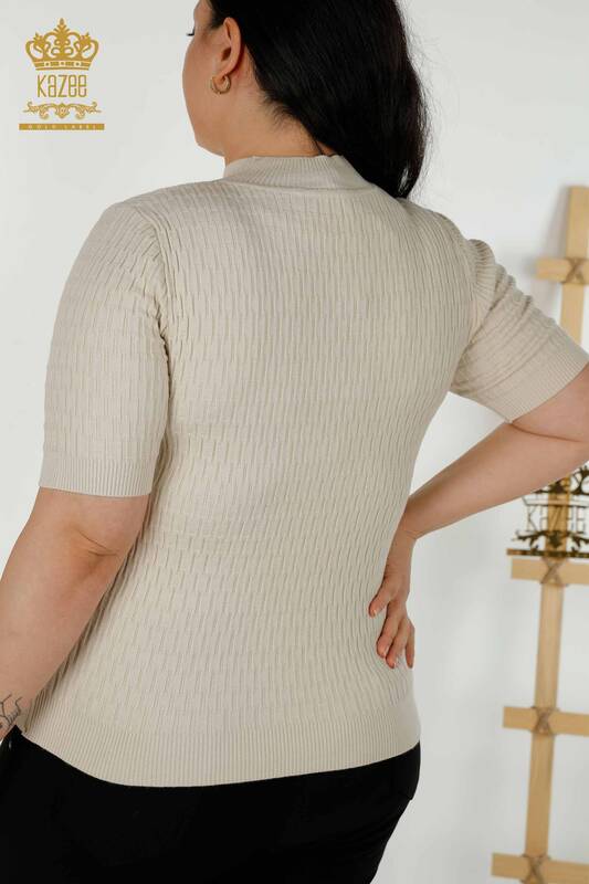 Großhandel Damen-Strickpullover mit Stehkragen, selbstgewebt, Beige – 30338 | KAZEE