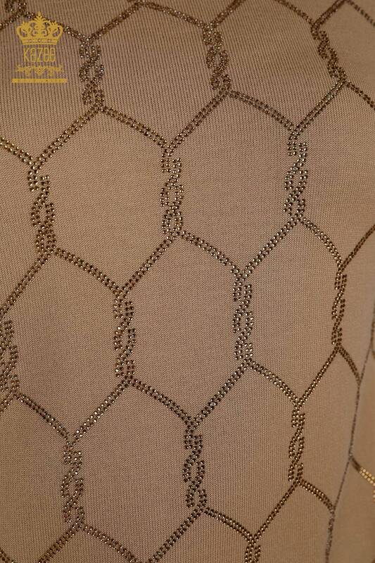 Großhandel für Damen-Strickpullover mit Steinstickerei und gemustertem Beige - 30317 | KAZEE