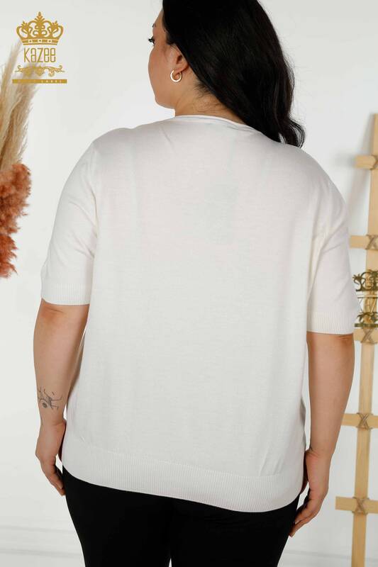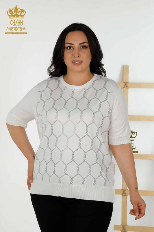 Großhandel für Damen-Strickpullover mit Steinstickerei, gemustert, Ecru – 30317 | KAZEE