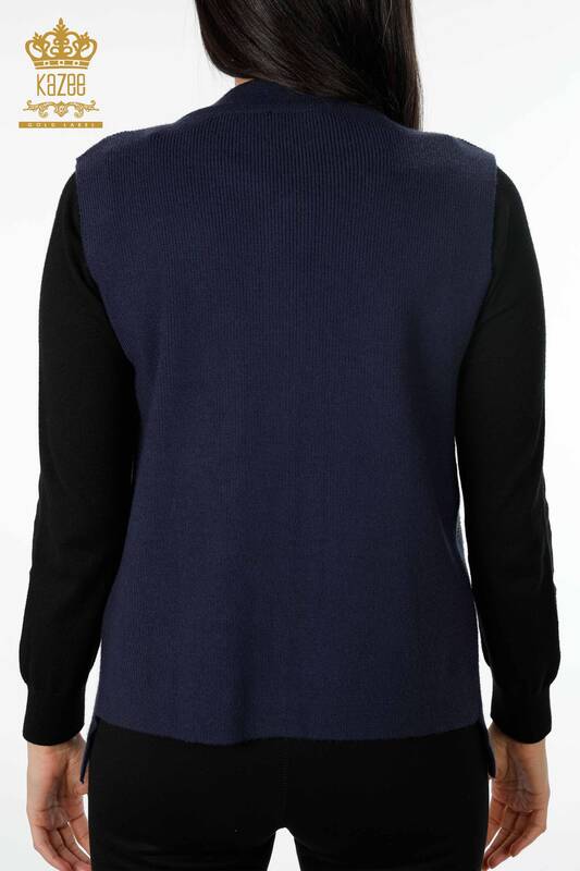 Großhandel Damen Strick Weste Kurz Floral Gestickter Stein - 16836 | KAZEE