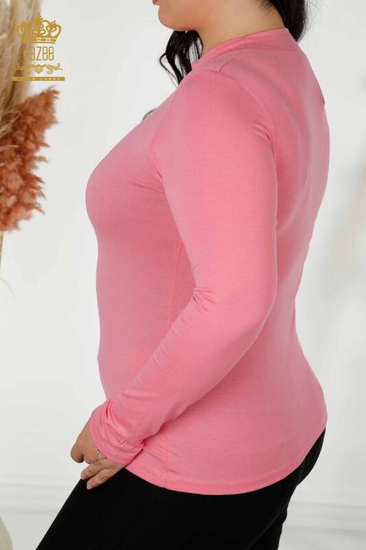 Großhandel Damenbluse Basic Halbstehkragen Rosa - 79258 | KAZEE