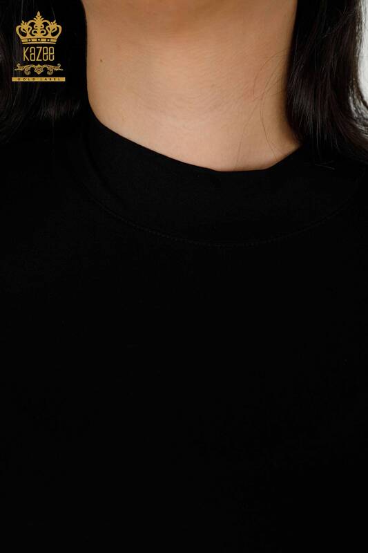Großhandel Damenbluse Basic Halbstehkragen Schwarz - 79258 | KAZEE