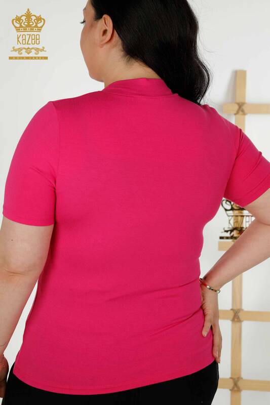 Großhandel Damenbluse Basic Halbstehkragen Fuchsia - 79264 | KAZEE