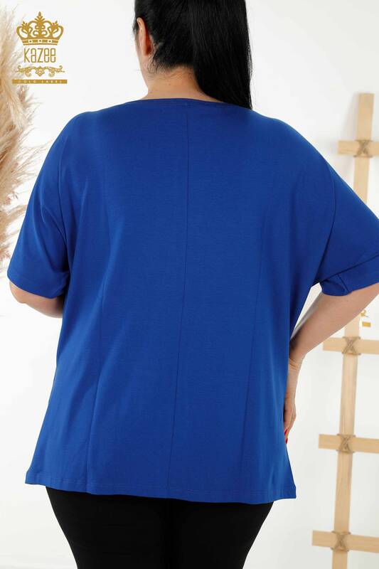 Großhandel Damenbluse Tiger Detaillierte Stein Gestickte Saks - 77713 | KAZEE