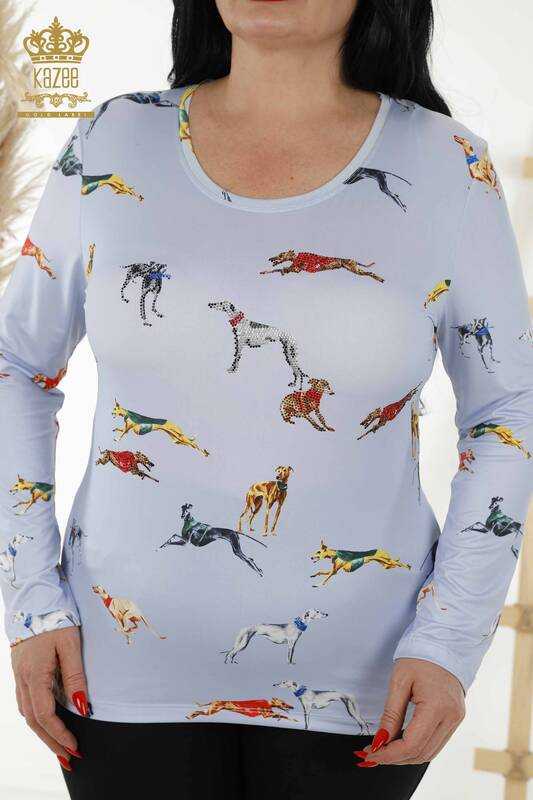 Großhandel Damenbluse Animal Figured Stone Bestickt Blau - 77772 | KAZEE