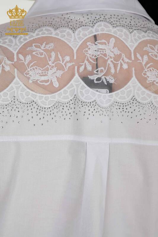 Großhandel Damen-Hemd, Tüll, detaillierte Steinstickerei, Weiß – 20407 | KAZEE