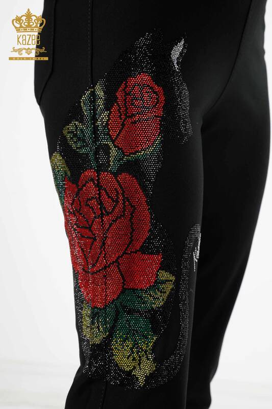 Damenhosen aus bestickter Viskose mit Rosenmuster und Steinen im Großhandel - 3437 | KAZEE