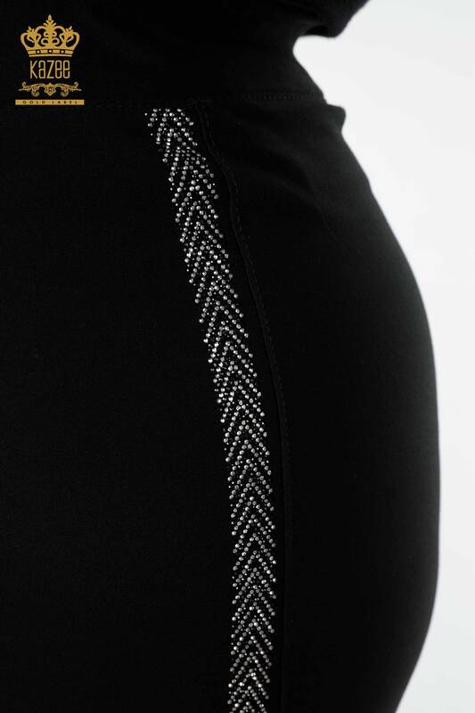 Großhandel Damenrock mit langen Streifen und Steinstickerei, Schlitzdetail, Schwarz – 4116 | KAZEE