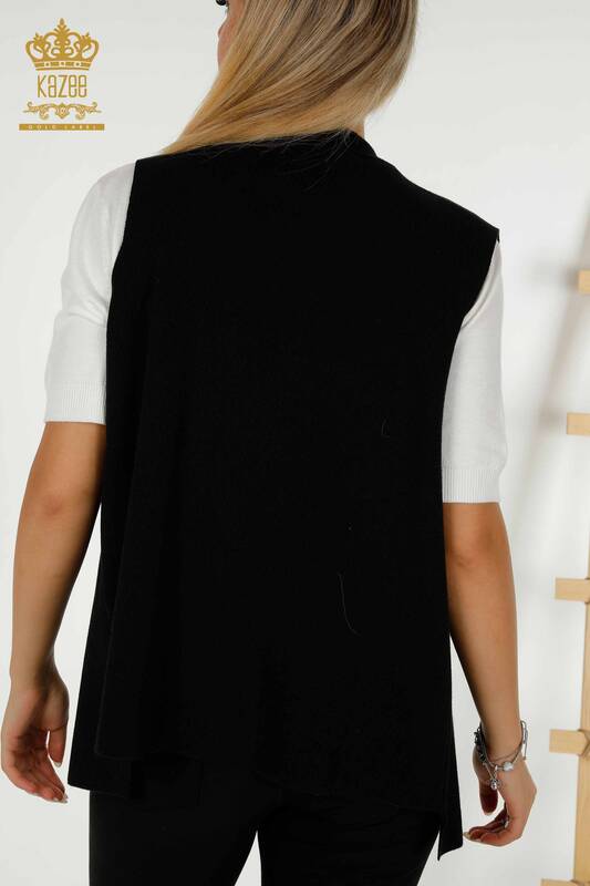 Großhandel Damen Weste Crystal Stone bestickt Schwarz - 30609 | KAZEE