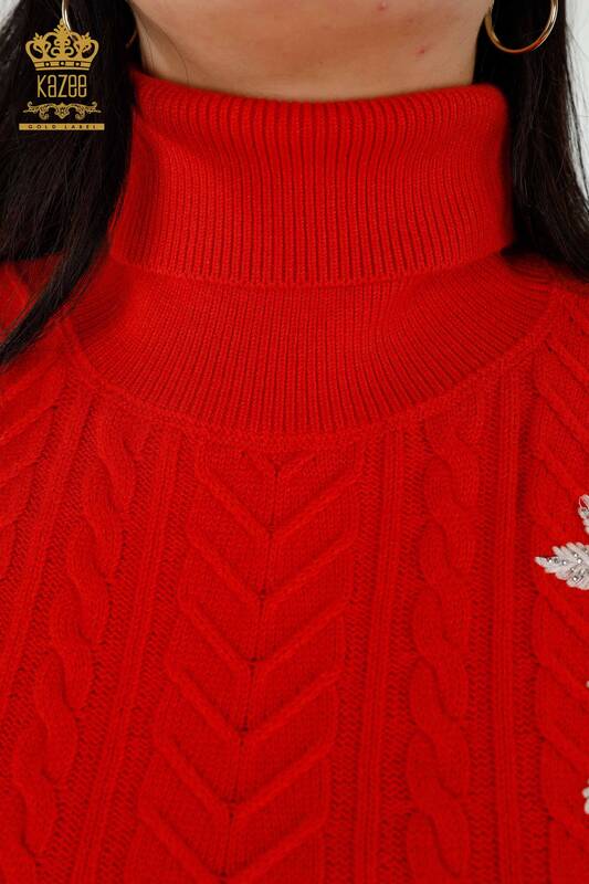 Großhandel Damen Pullover Blume gemustert Stein bestickt Koralle - 30179 | KAZEE