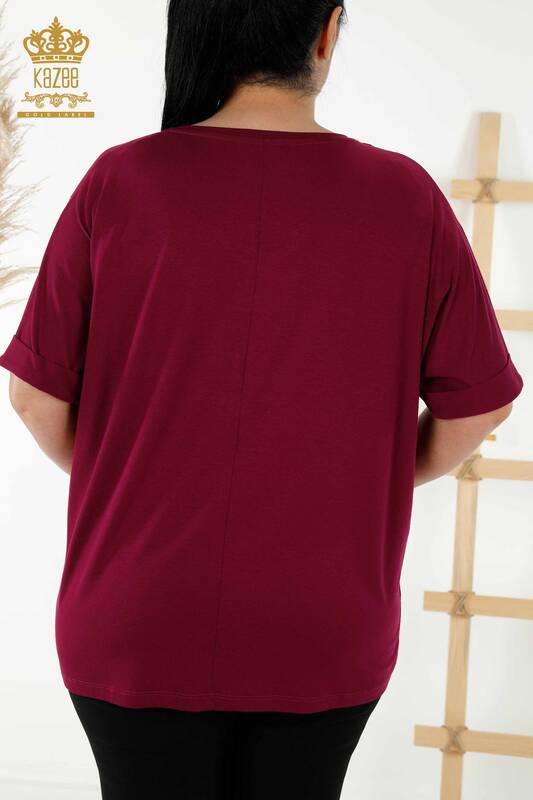 Großhandel Damenbluse Blumenmuster Stein bestickt Flieder - 78879 | KAZEE