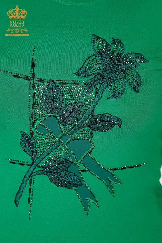 Großhandel Frauen Bluse mit Blumenmuster Stein gestickt Grün-79011 / KAZEE