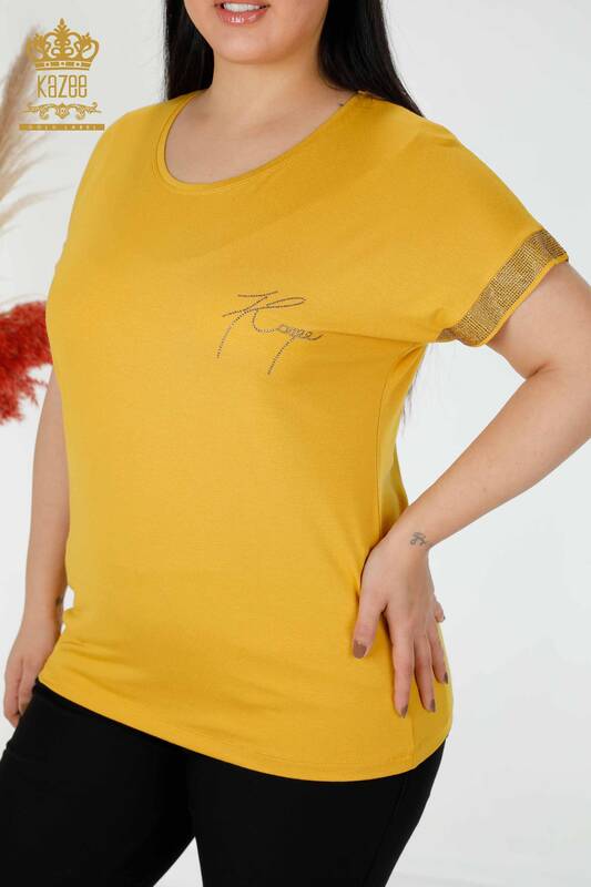 Großhandel Frauen Bluse Stein bestickt Safran-78918 / KAZEE