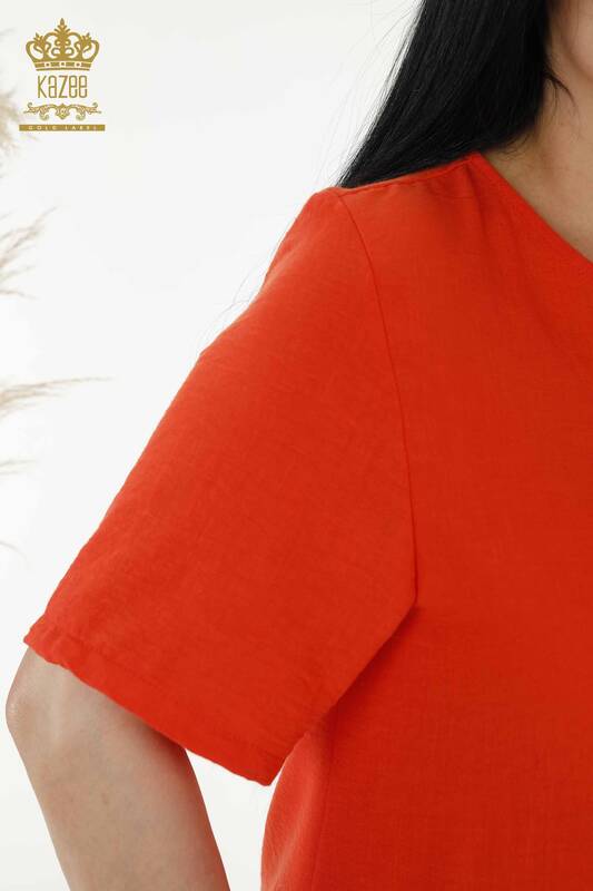 Großhandel Damen Kleid Button Detaillierte Tasche Orange - 20383 | KAZEE