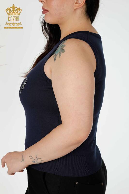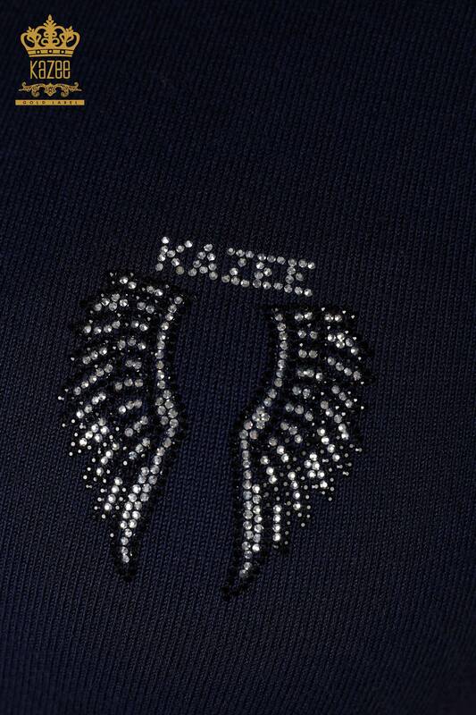 Großhandel Frauen Strickwaren Engel Flügel Muster ärmellos Stein bestickt Marineblau-16921 / KAZEE