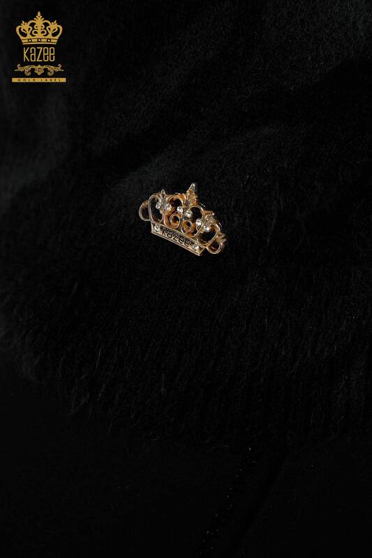 Großhandel Damen Strickpullover Schwarz mit Angora-Muster mit Logo-18992 / KAZEE