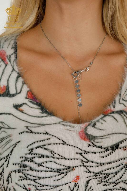 Großhandel Damen Strickjacke Stein bestickt Digitaldruck Angora Muster Oranj - 18975 / KAZEE