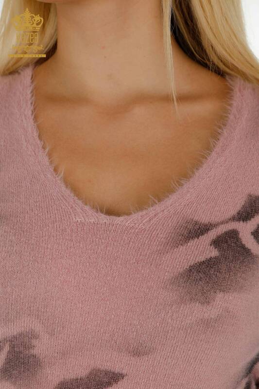 Großhandel Damen Strickjacke Digitaldruck Angora Muster Stein bestickt Pulver-18992 / KAZEE