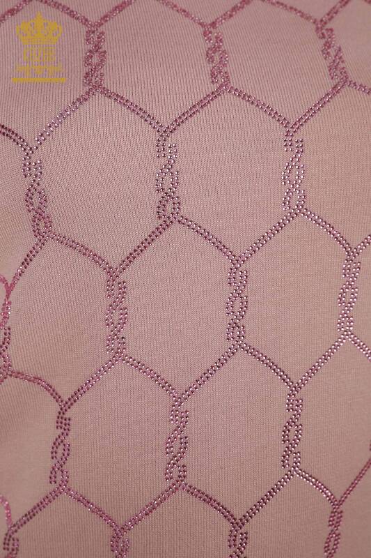 Großhandel für Damen-Strickpullover mit Steinstickerei und gemustertem Puder - 30317 | KAZEE