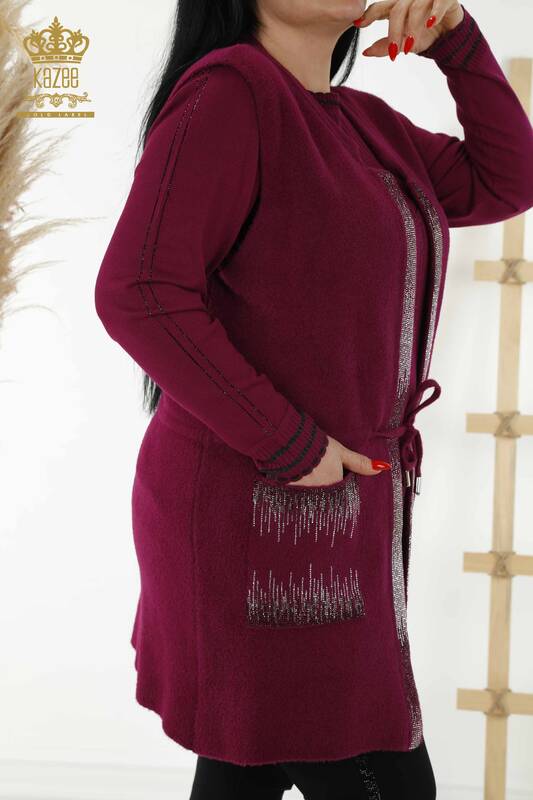 Großhandelsweste der Frauen mit Kristallstein-bestickter Taschen-Seil-Krawatte Lila - 30247 | KAZEE