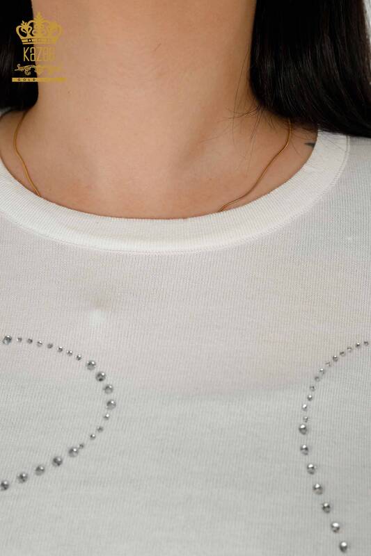Großhandel Damen-Strickpullover mit Rundhalsausschnitt, Steinstickerei, Ecru – 30157 | KAZEE